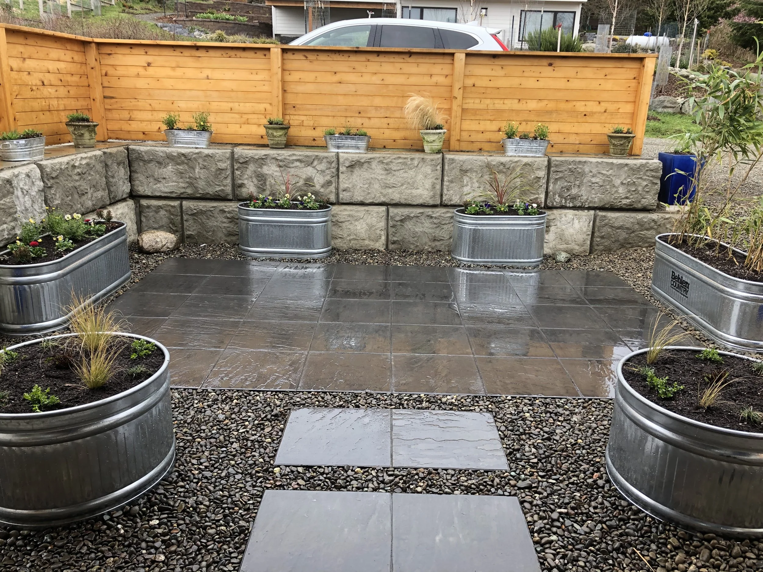 Hardscaping can create the perfect outdoor living space, or to help you deal with problems like drainage and erosion. We work with natural stone, interlocking pavers, and even recycled concrete to make your yard work for you all year round. We can help with projects including: